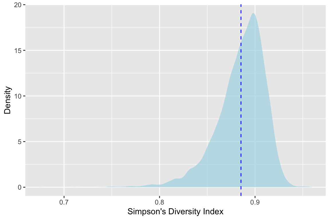 labs(x="Simpson's Diversity Index",y="Density")