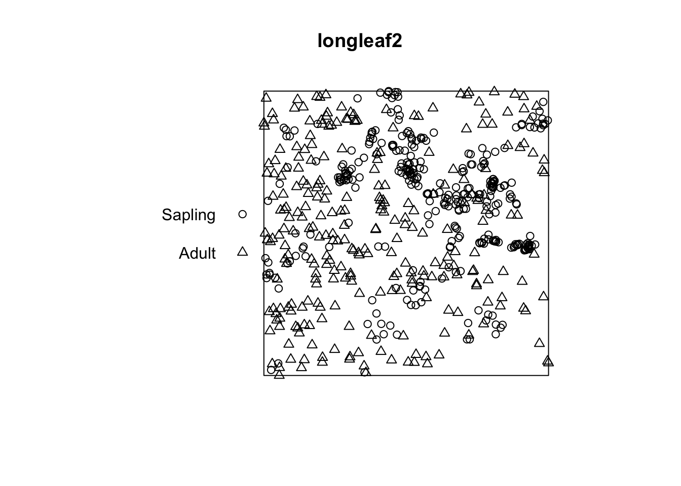 I think by looking at that plot that the adults are clustered and the saplings even more so. Let’s investigate: