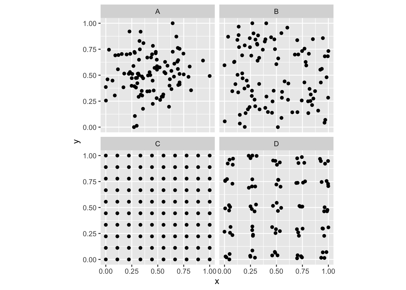 patternC <- data.frame(expand.grid(x = seq(0, 1, length.out = sqrt(n)),