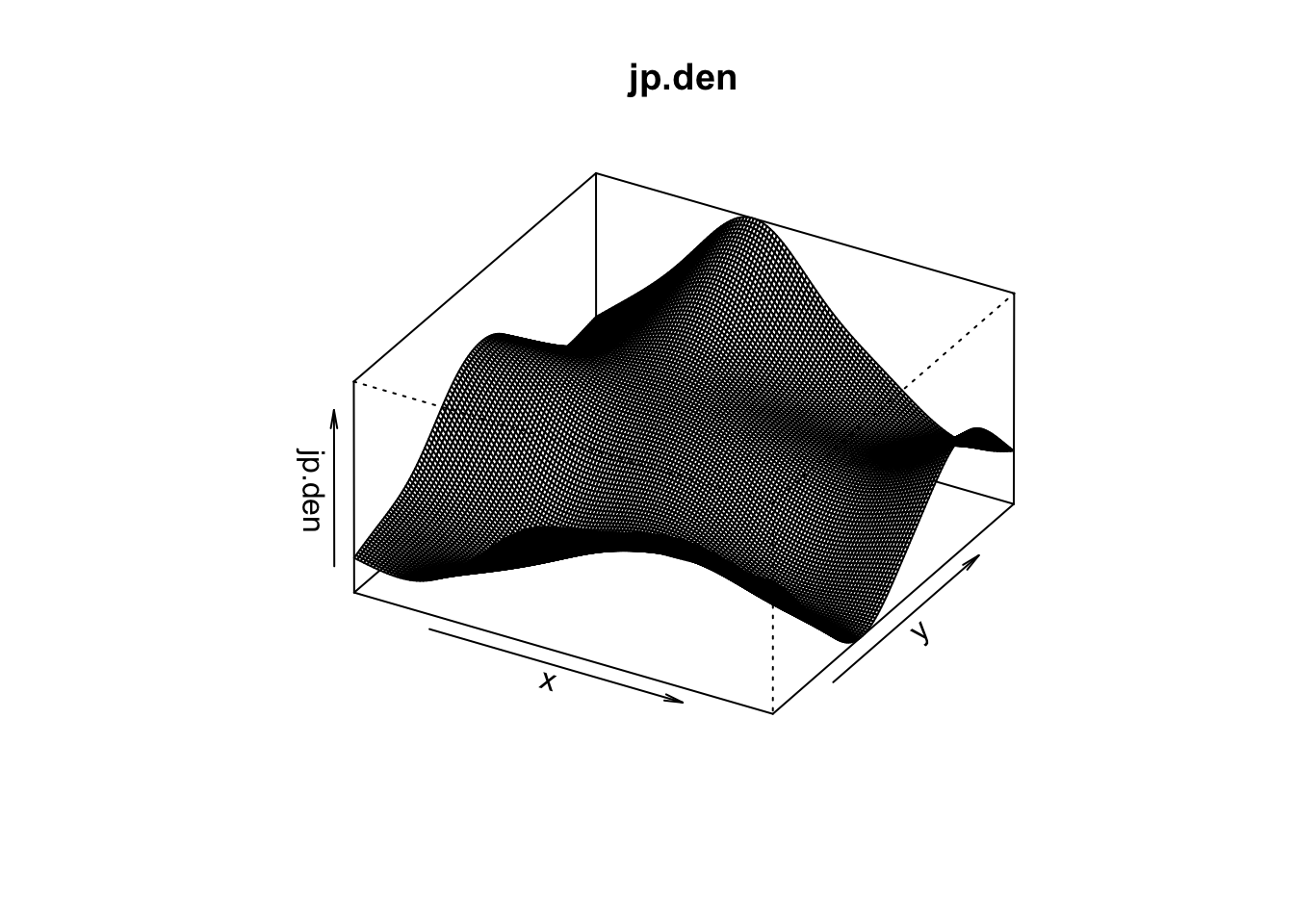 This density object (class density.ppp) has methods for summary, plot, contour and persp. E.g., here is a perspective plot: