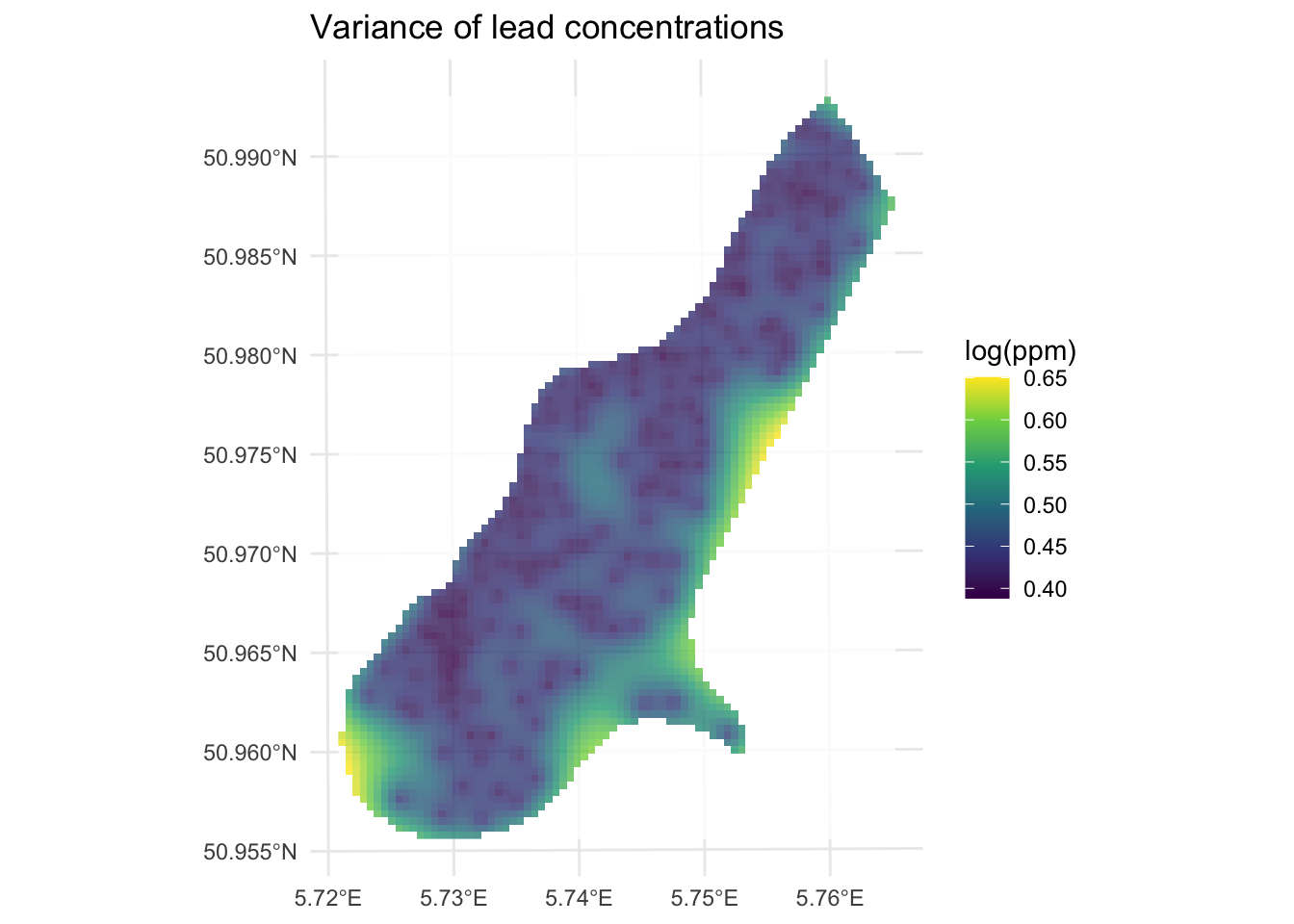 The gstat(Pebesma and Graeler 2026) package is your friend. And I’m going to plot in ggplot via tidyverse(Wickham 2023) with sf(Pebesma 2026), terra(Hijmans 2026) and tidyterra(Hernangómez 2023).