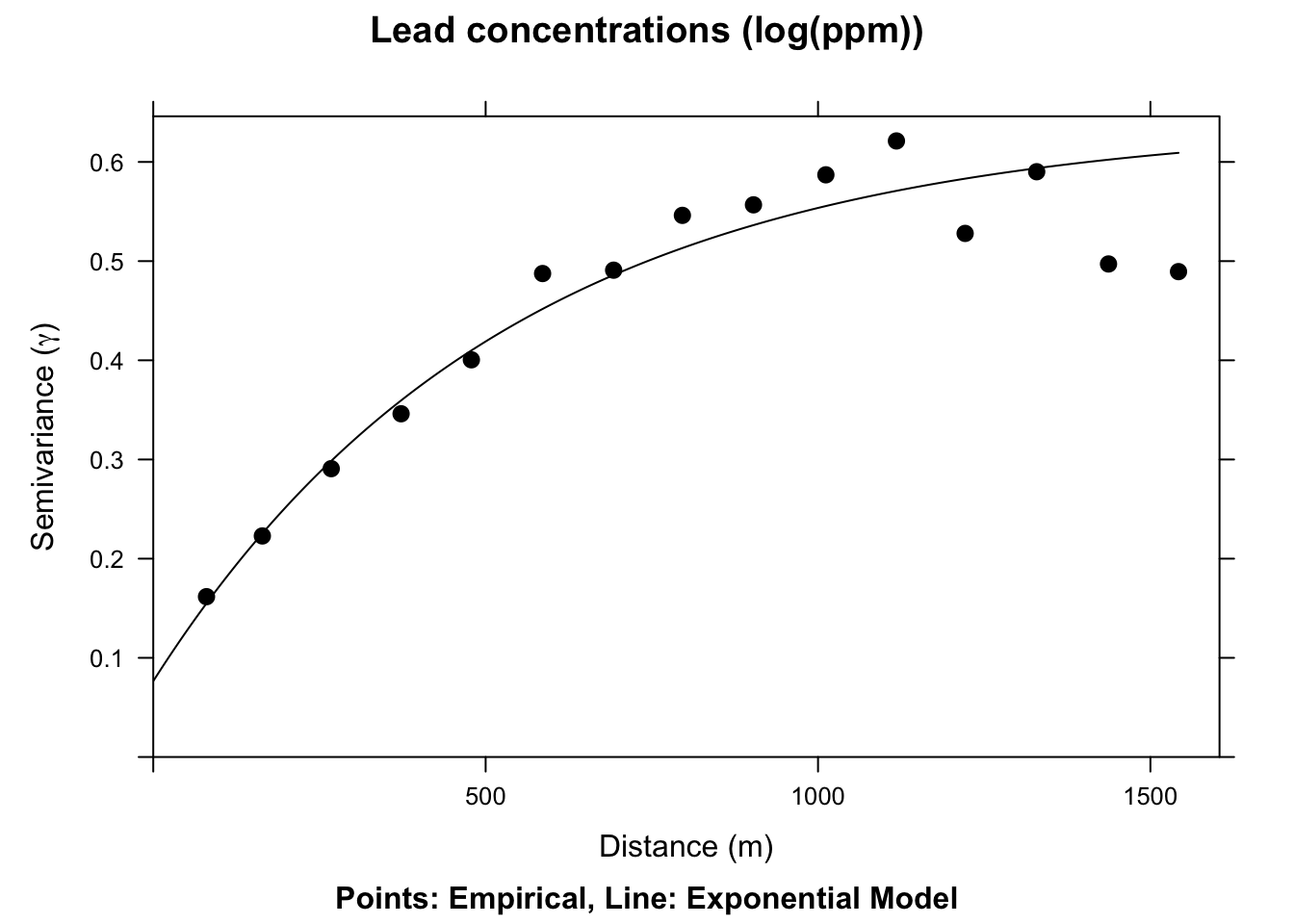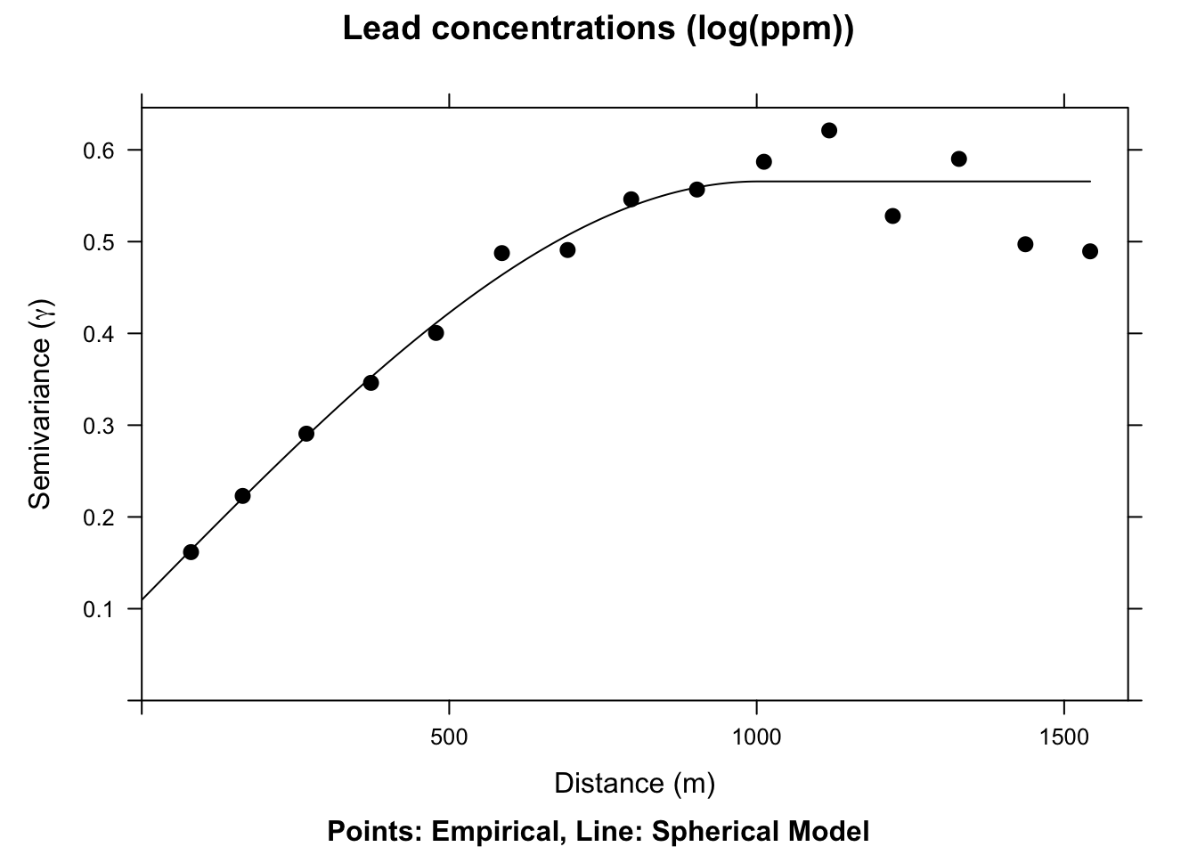 leadModel <- vgm(psill=0.6, model="Sph", range=750, nugget=0.05)